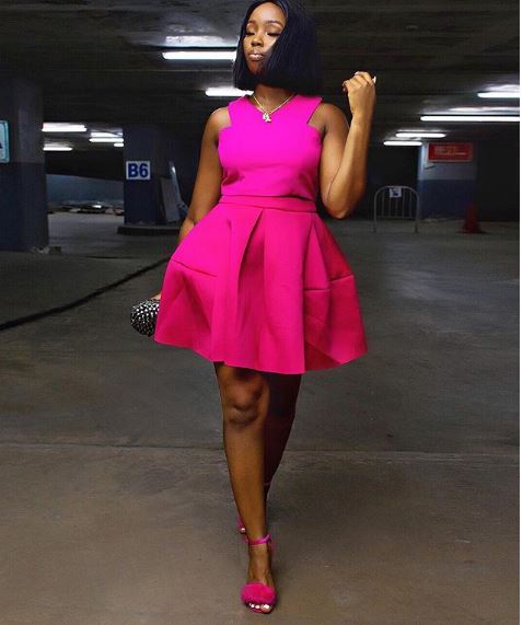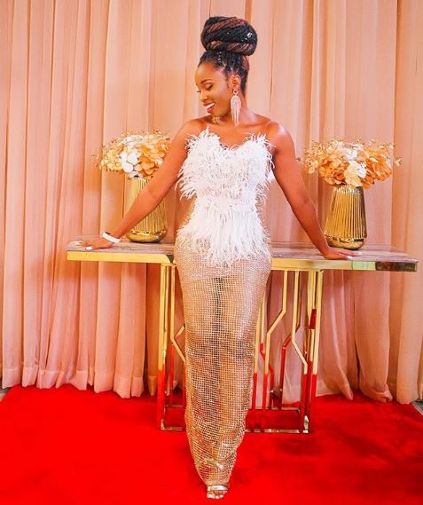 Ex-Big Brother Naija Housemate and brand ambassador, Bambam bares cleavage as she steps out in a glamorously styled outfit for an event.